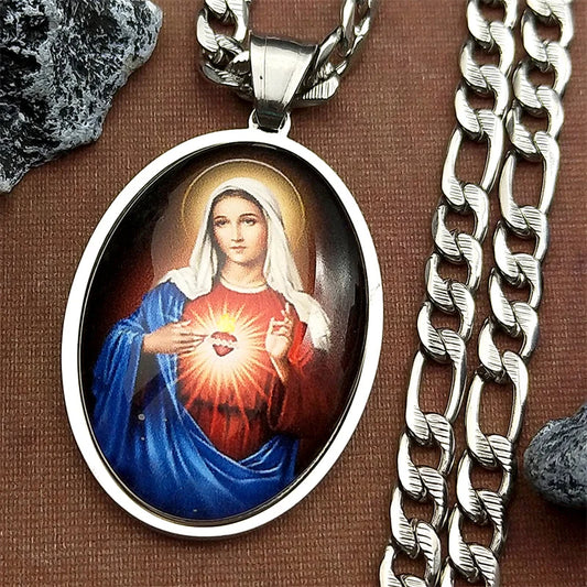 Virgin Mary Sacred Heart,Christian Necklace,Religious Gift Jewelry