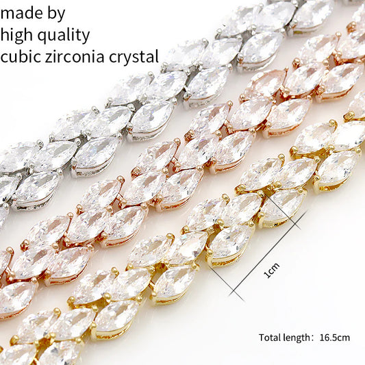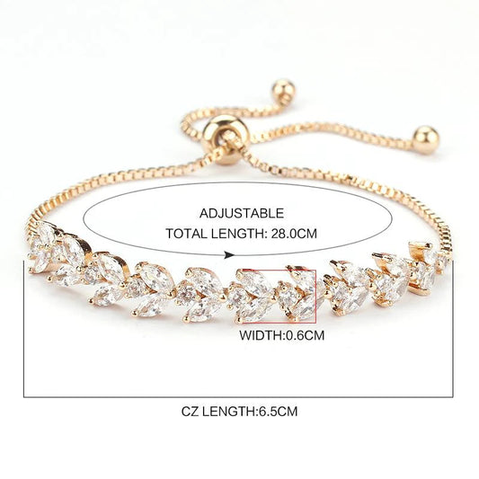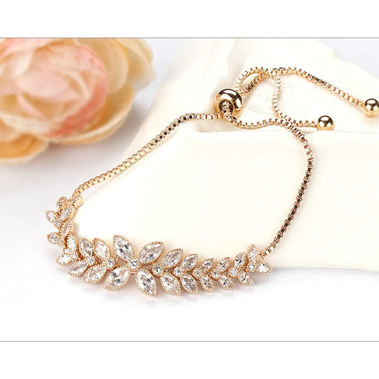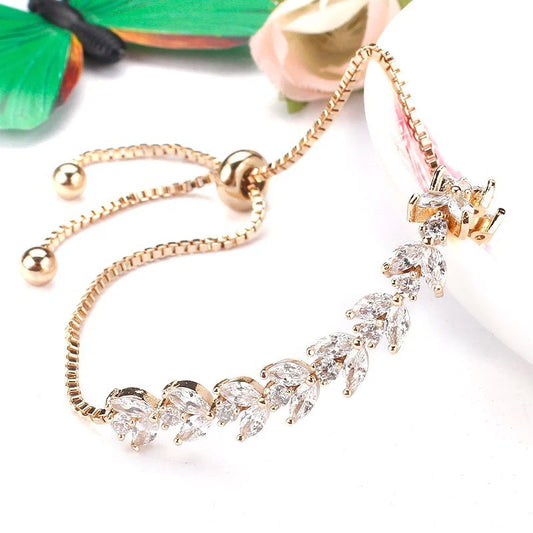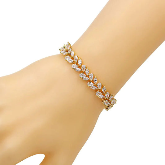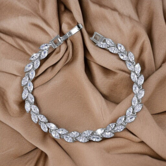 White Gold Platinum Crystal Leaf Ladies Bracelet