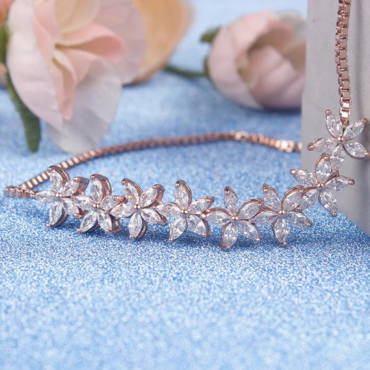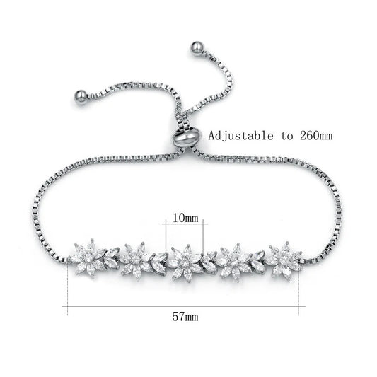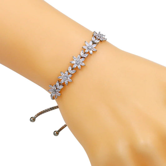 White Gold Platinum Sparkling Crystal Flower Design Bracelet