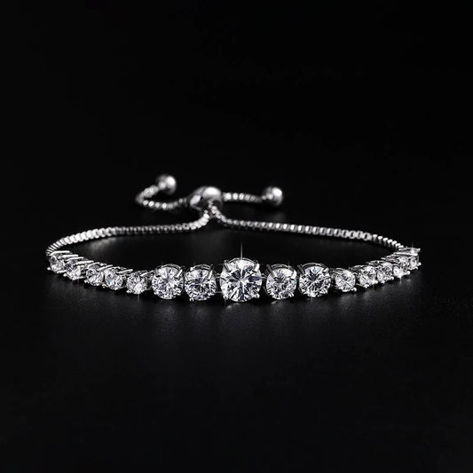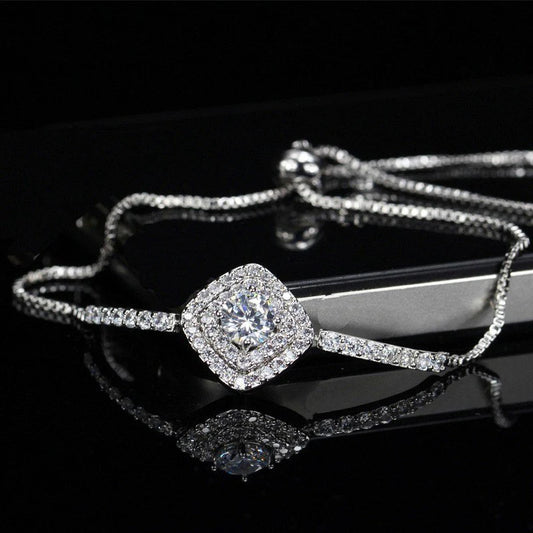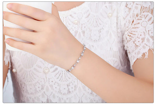Silver Platinum White Zircon Heart Elegant Ladies Bracelet
