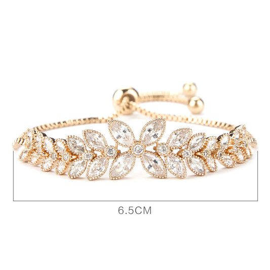 Gold Platinum Sparkling Crystal Flower Design Bracelet