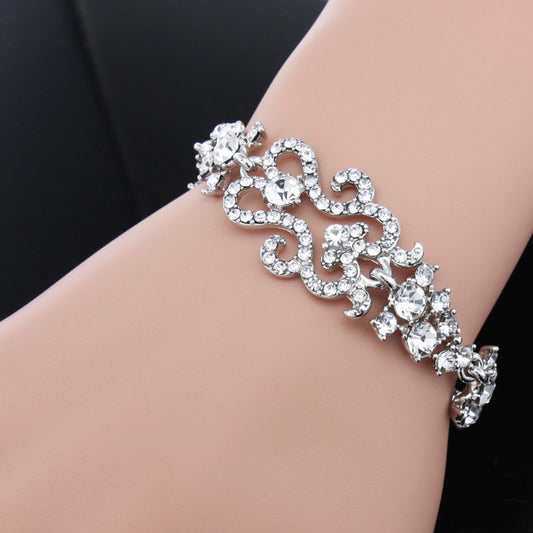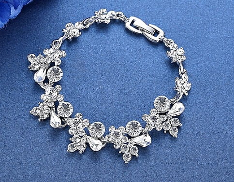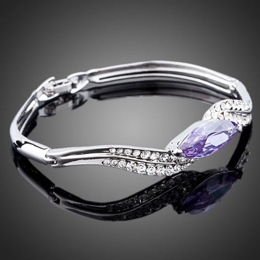 Platinum plated stellux crystal stone curved ladies diamond bracelet