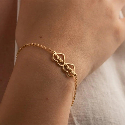 Custom Double Heart Two Name Bracelet,Couple Personalized Bracelet