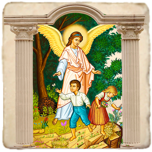 Guardian Angel with Child Icon,Marble Icon,Handmade,Baptism gift,Christian Icon