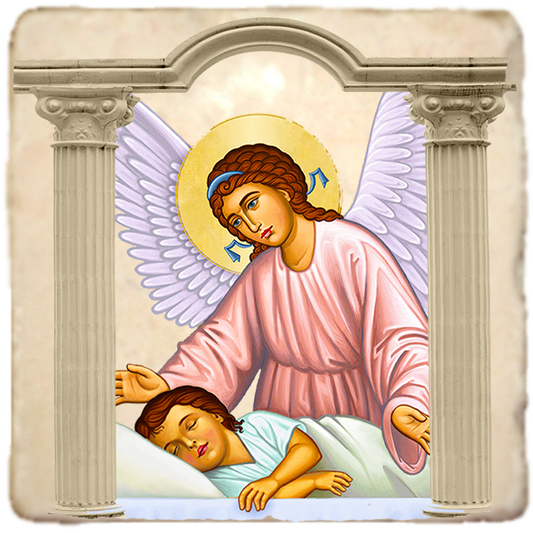Guardian Angel Icon,Marble Icon,Handmade,Baptism gift,Christian Icon