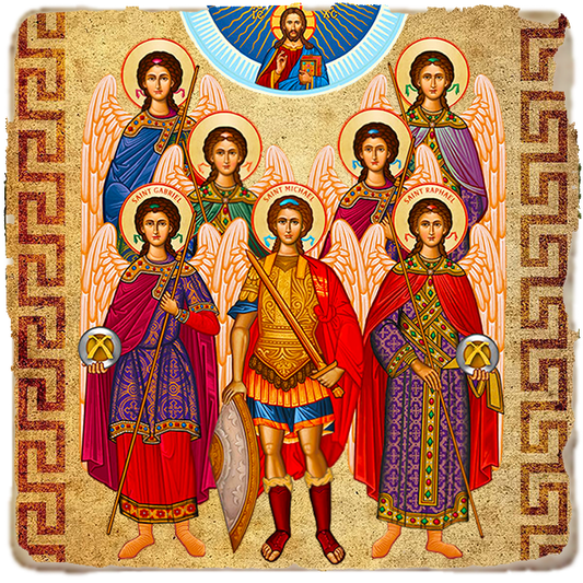 Seven Holy Archangels Icon,Marble Icon,Handmade,Baptism gift,Christian Icon