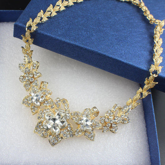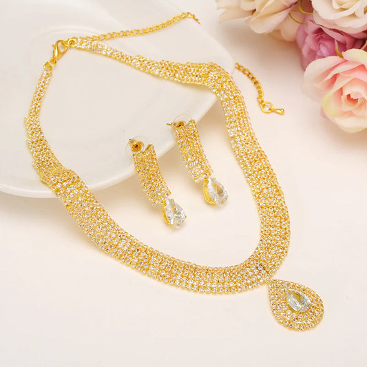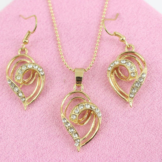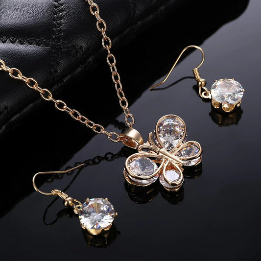 18K Gold Romantic Design Crystal Lady Jewelry Set