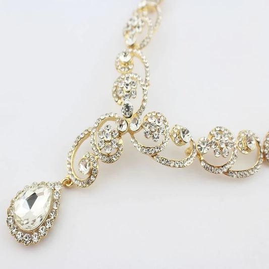 Elegant design women’s jewelry set with 18K gold plated crystal stones