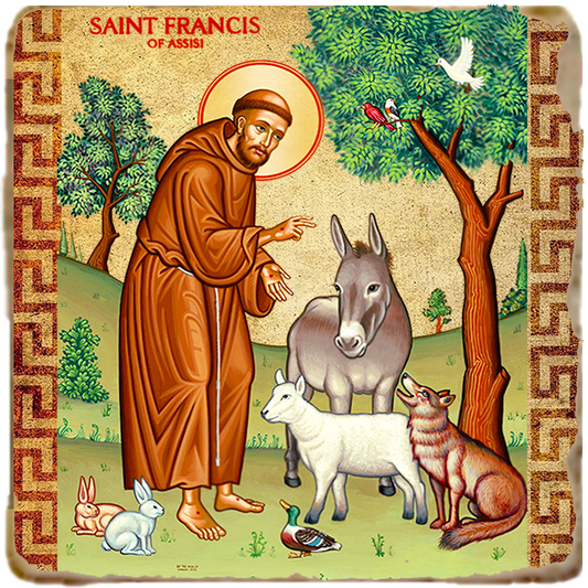St. Francis & the Animals Icon,Men Saints,Marble Icon,Handmade,Prayer gift,Christian Icon