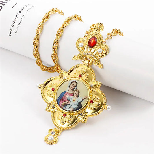Gold Color Orthodox Necklace,Christian Necklace,Jesus Virgin Mary Religious Necklace