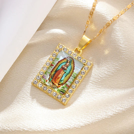 Virgin Mary Christian Stones Necklace,Religious Necklace