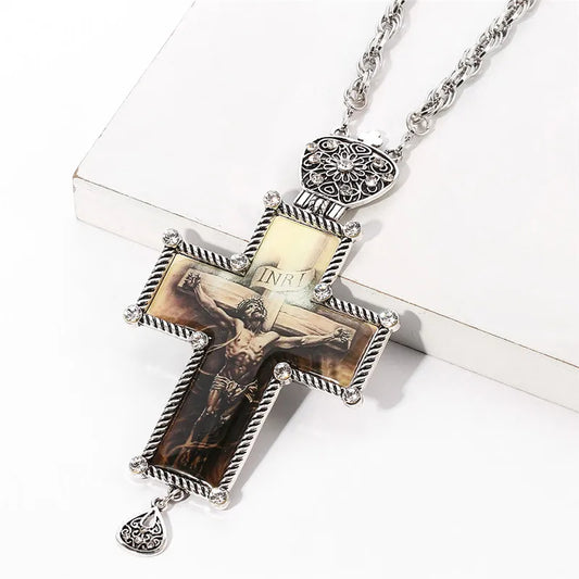 Silver Color Orthodox Cross Necklace,Christian Necklace,Jesus Religious Necklace