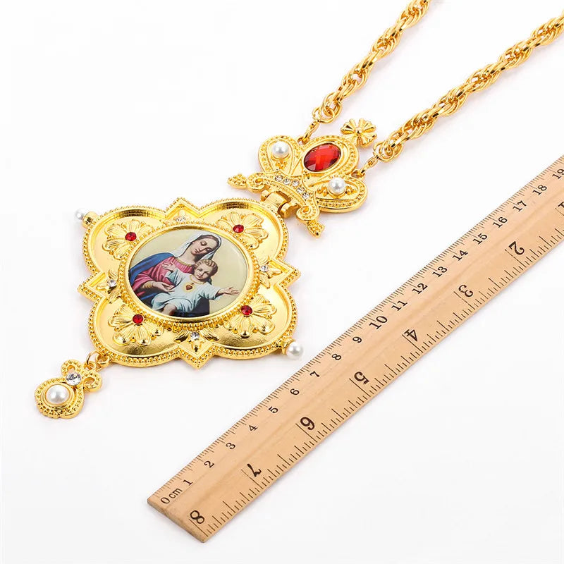 Gold Color Orthodox Necklace,Christian Necklace,Jesus Virgin Mary Religious Necklace