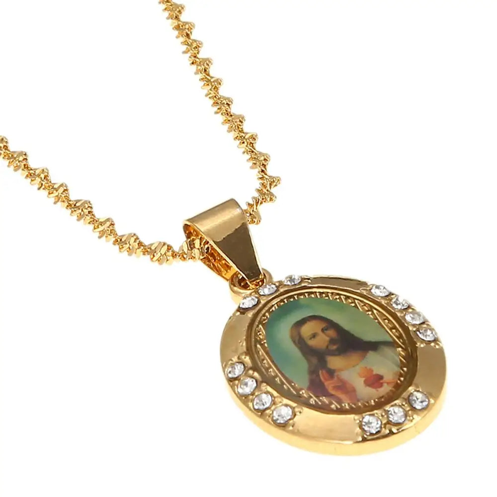 Gold Zircon Jesus Portrait Pendant Necklace,Christian Necklace