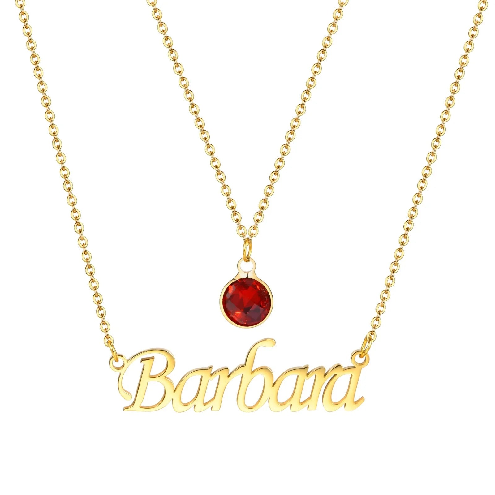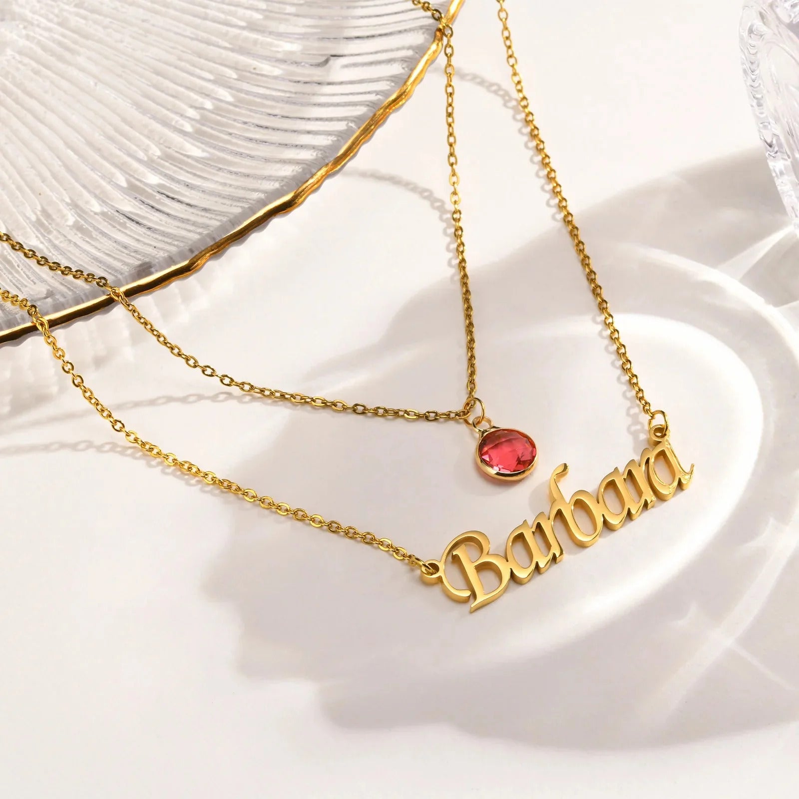 Personalized Double Chain Layered Name Necklace With Birthstone