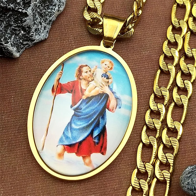 St.Joseph with Baby Jesus,Christian Necklace,Religious Gift Jewelry