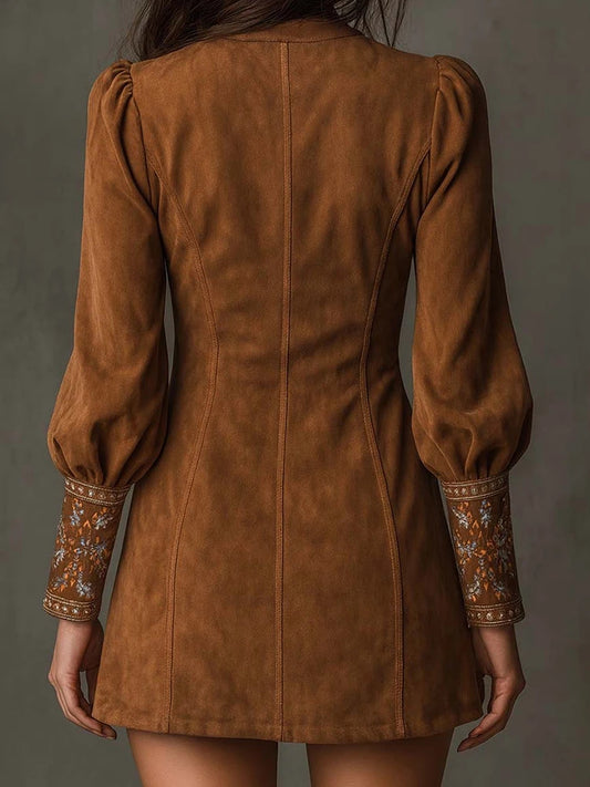 Long Sleeve Embroidery V Neck Dress